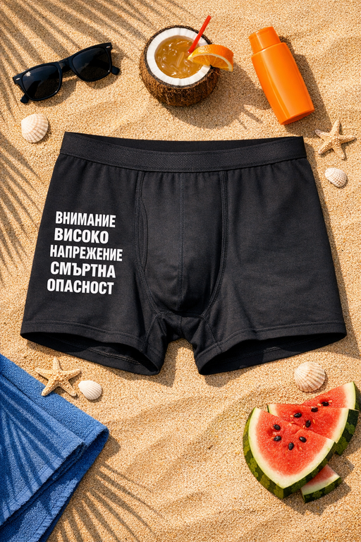 Мъжки боксерки „ВНИМАНИЕ ВИСОКО НАПРЕЖЕНИЕ СМЪРТНА ОПАСНОСТ“